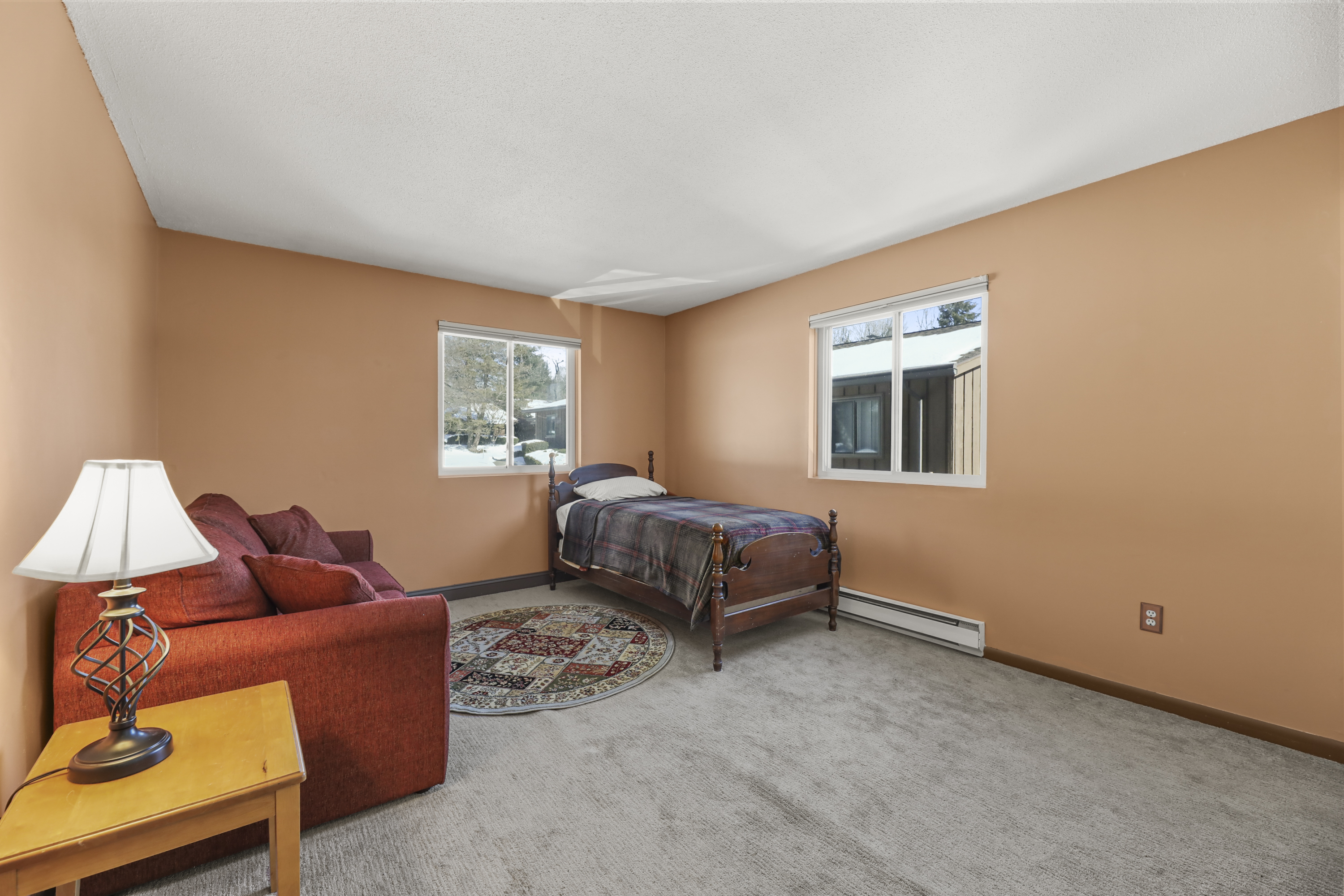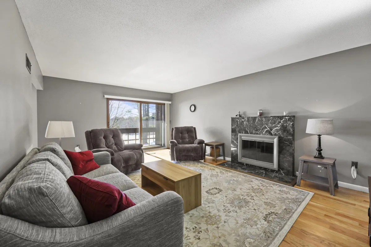 Exceptionally maintained two bedroom and two bathroom condo. An end unit located in Churchill Crest Condominium Association that offers exterior maintenance, cable/internet, and a heated pool with pavilion. Boasting a spacious living room with a wood burning fireplace, hardwood floors, and a private balcony. Leading into a formal dining room off the kitchen with a breakfast bar and ample cabinets and counter space. The main level offers Central A/C. Lower level features garage access, an additional full bathroom, laundry, and a bonus storage room.